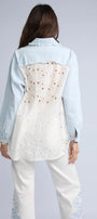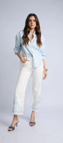 Denim : Wash inside out in cold water. Avoid tumble drying to maintain shape and color. Iron at low temperature if needed.