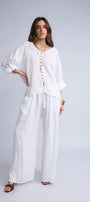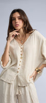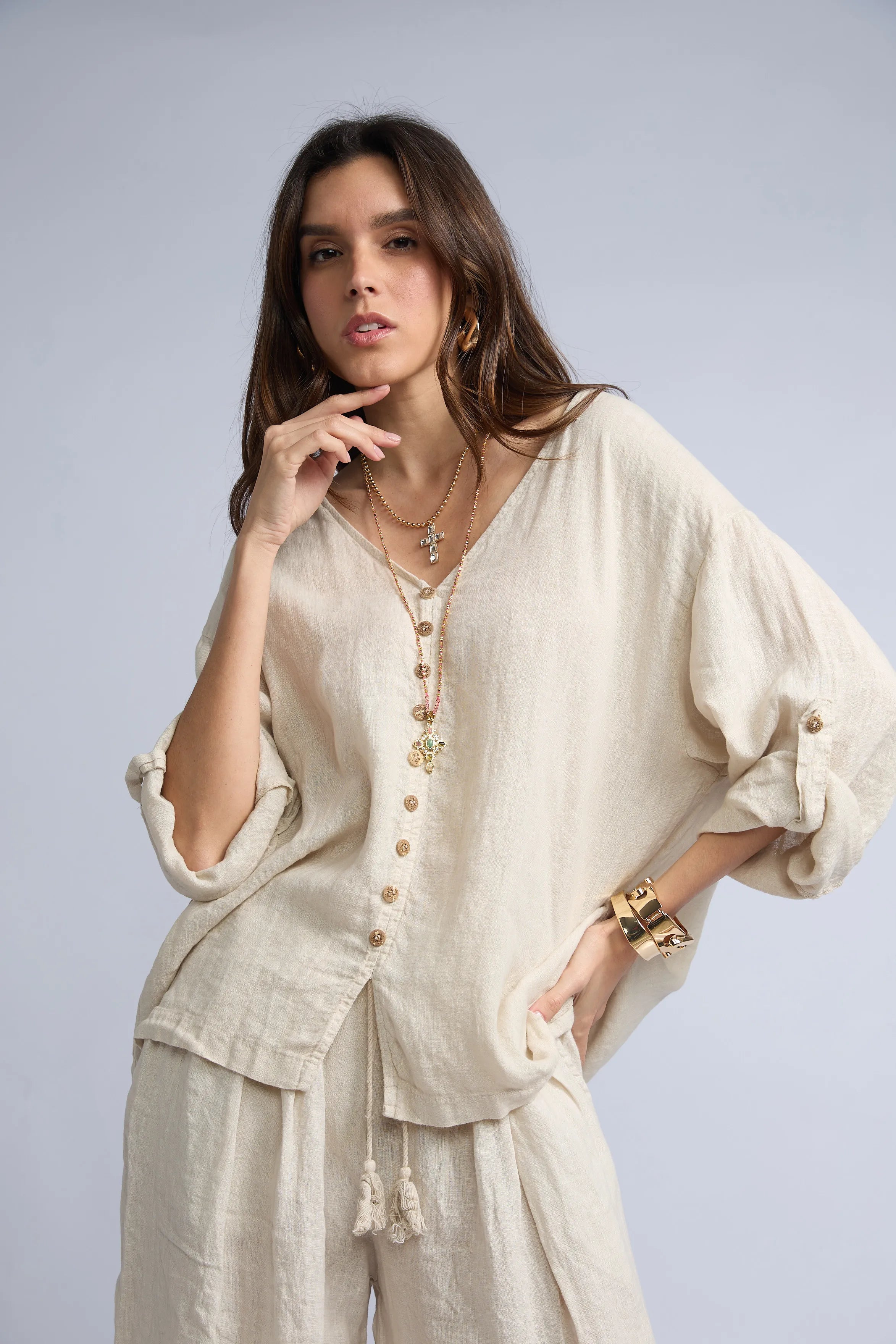 Drill: Wash in cold or warm water, preferably by hand. Iron at medium temperature and avoid bleach to keep the fabric in good condition.