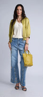 Denim : Wash inside out in cold water. Avoid tumble drying to maintain shape and color. Iron at low temperature if needed.
