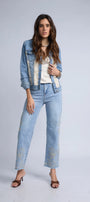 Denim : Wash inside out in cold water. Avoid tumble drying to maintain shape and color. Iron at low temperature if needed.