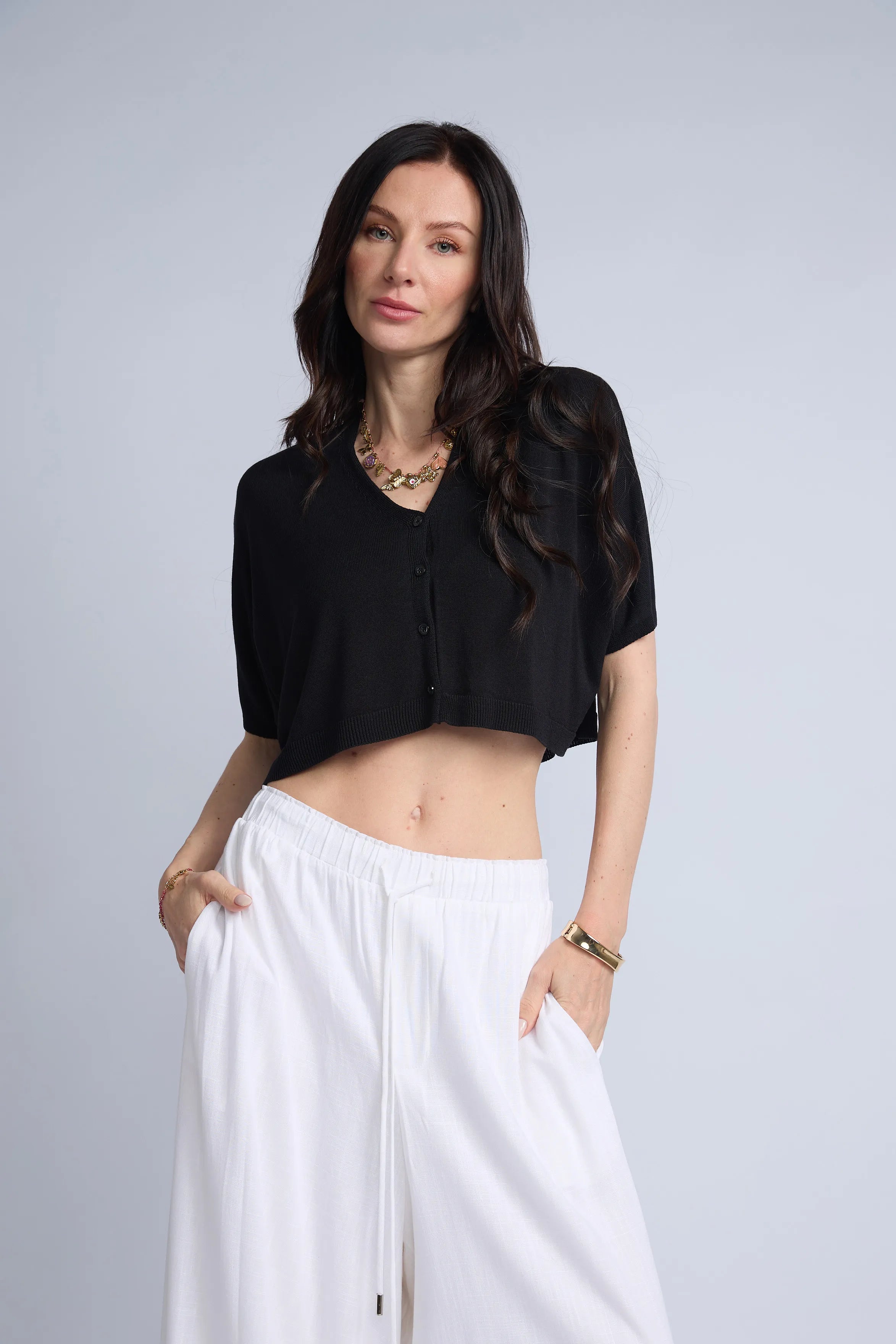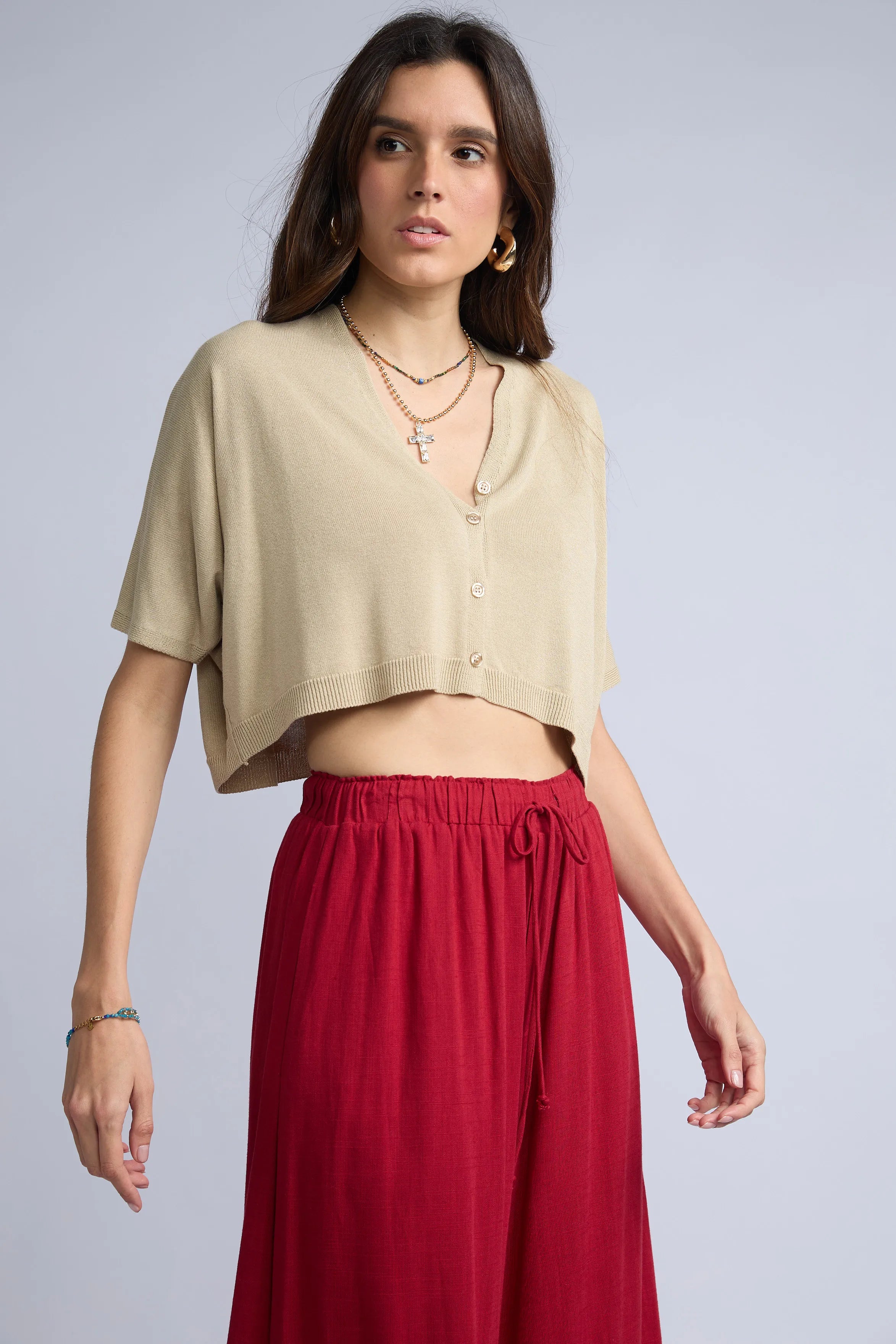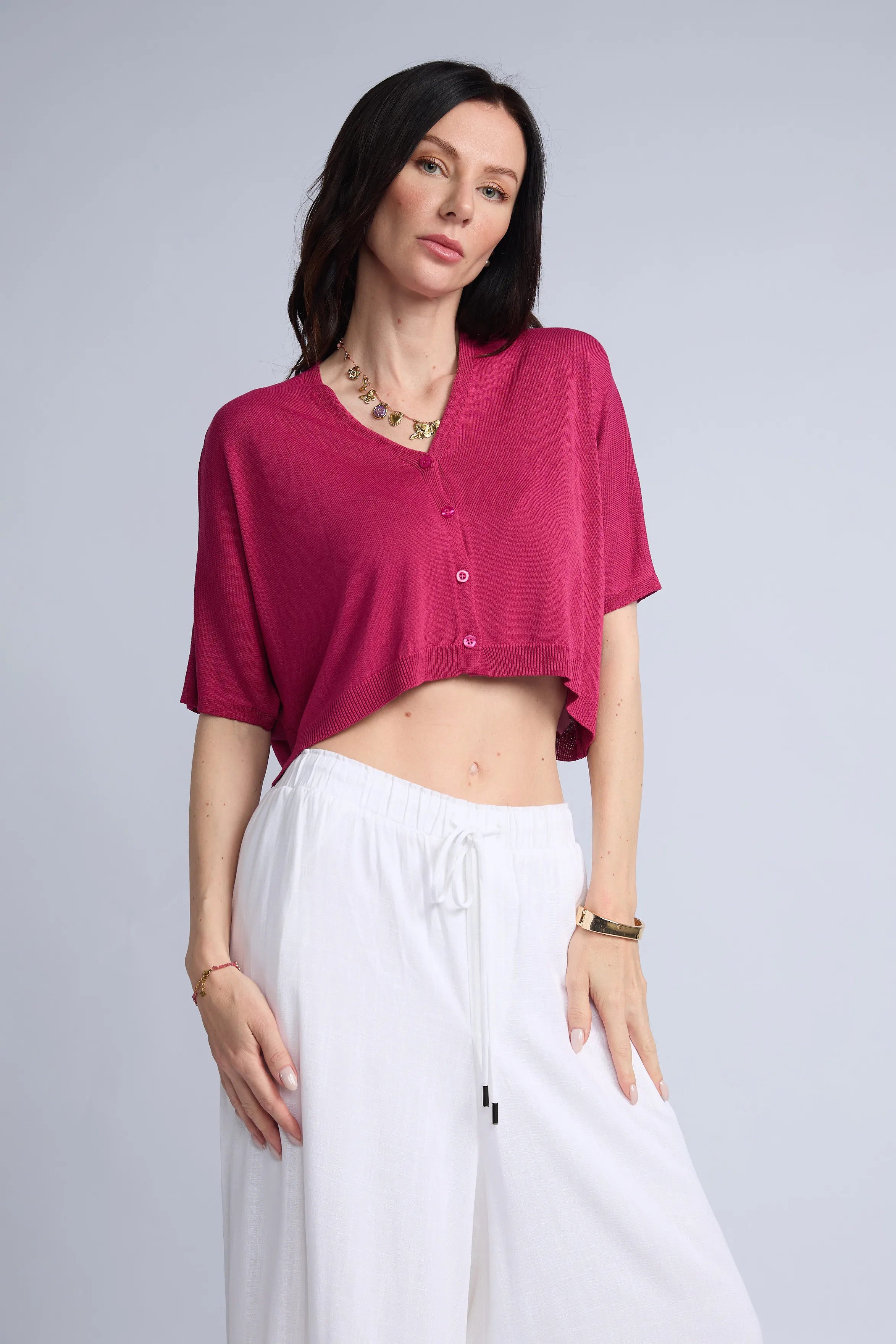 Chompa Abierta Crop Botones