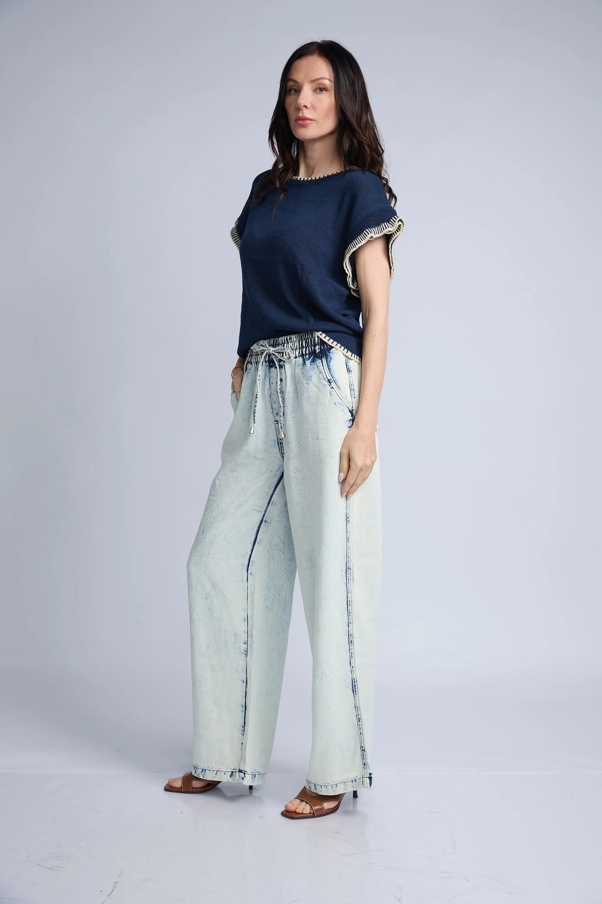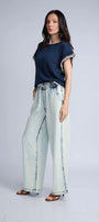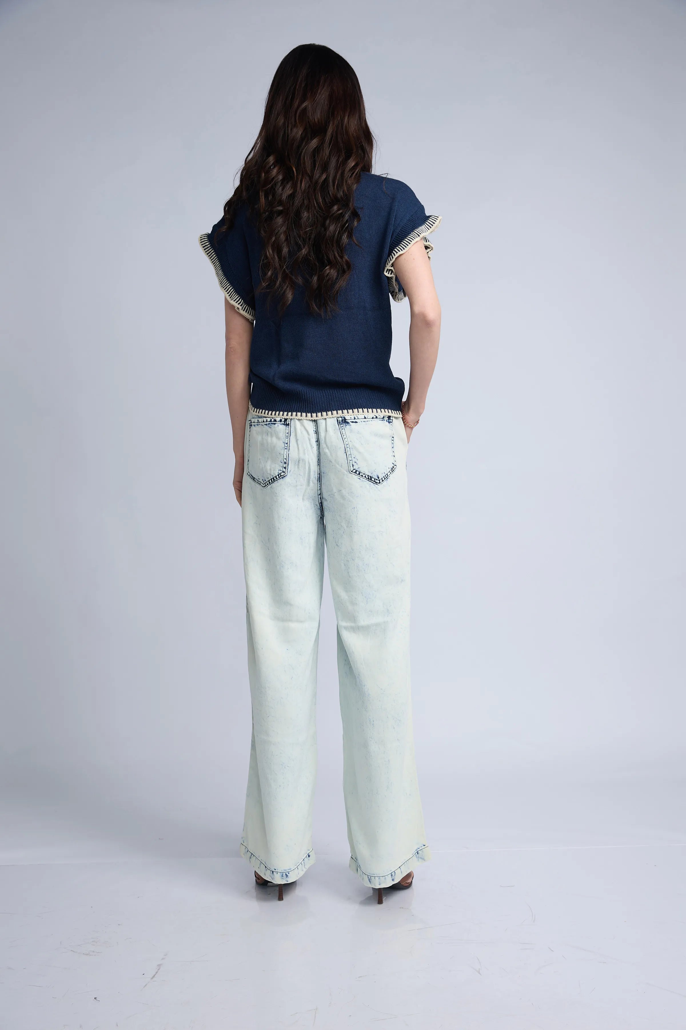 Denim : Wash inside out in cold water. Avoid tumble drying to maintain shape and color. Iron at low temperature if needed.