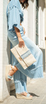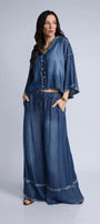 Denim : Wash inside out in cold water. Avoid tumble drying to maintain shape and color. Iron at low temperature if needed.