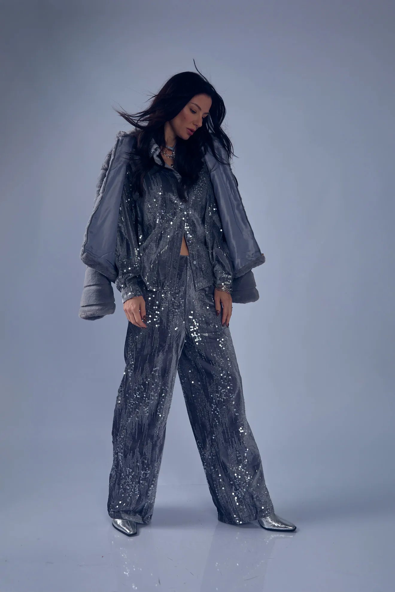 Pantalon Terciopelo Lentejuelas - Única / Gris