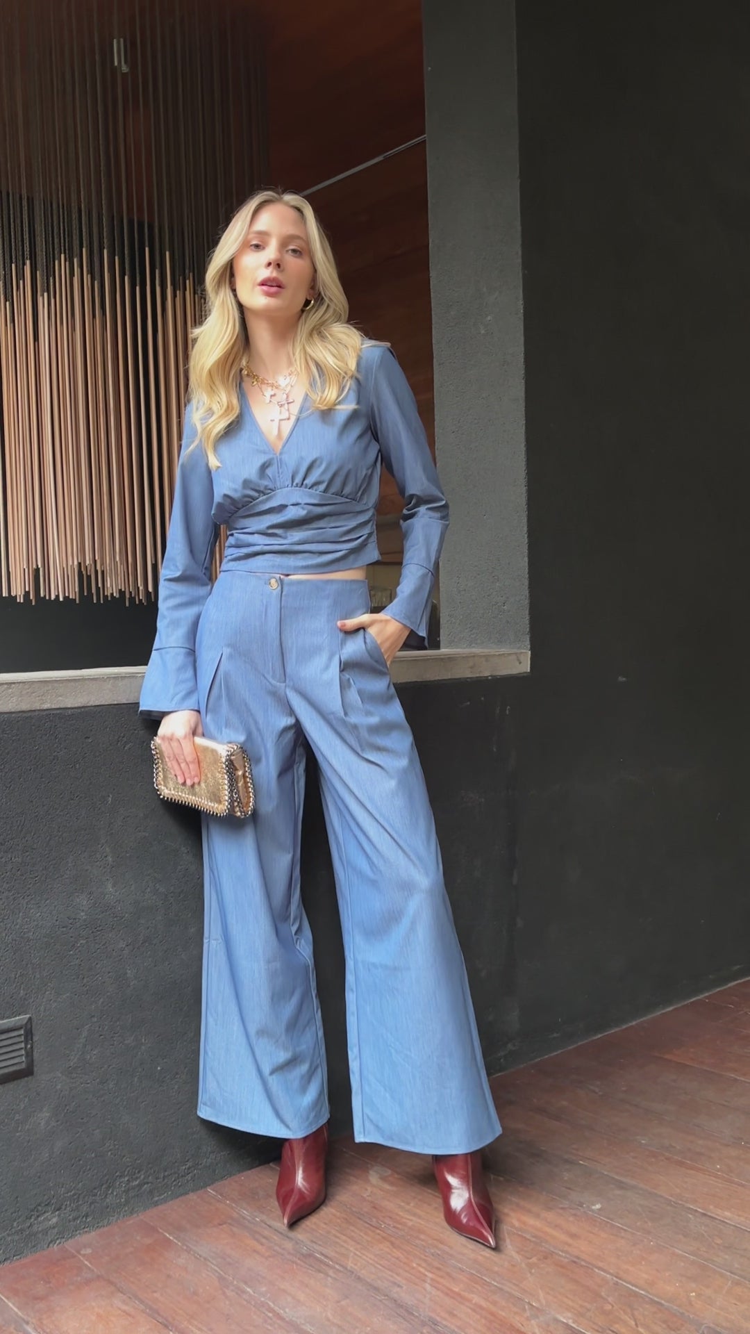 Pantalón denim pliegues