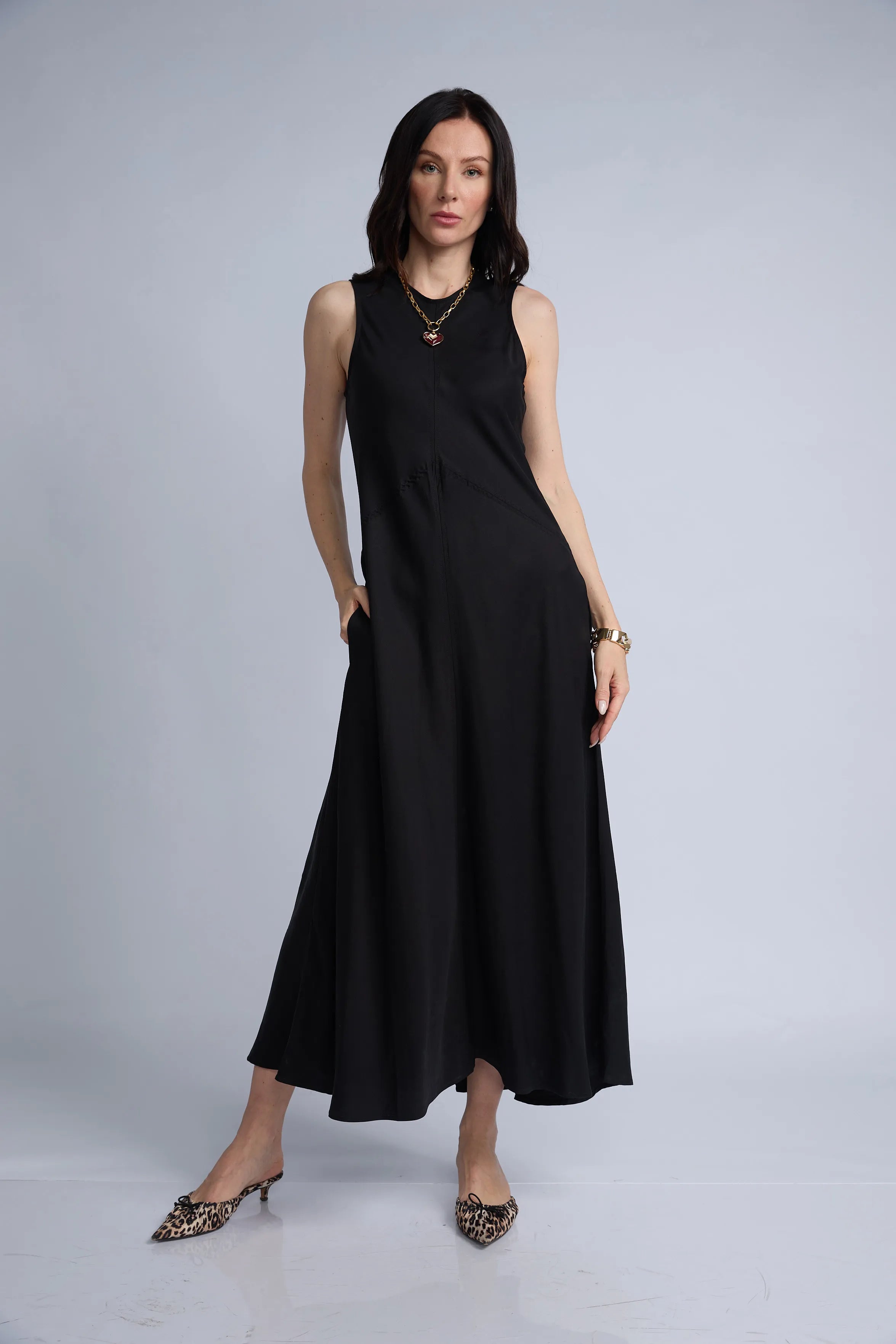 Vestido Largo Bolsillos y Cierre - M / Negro